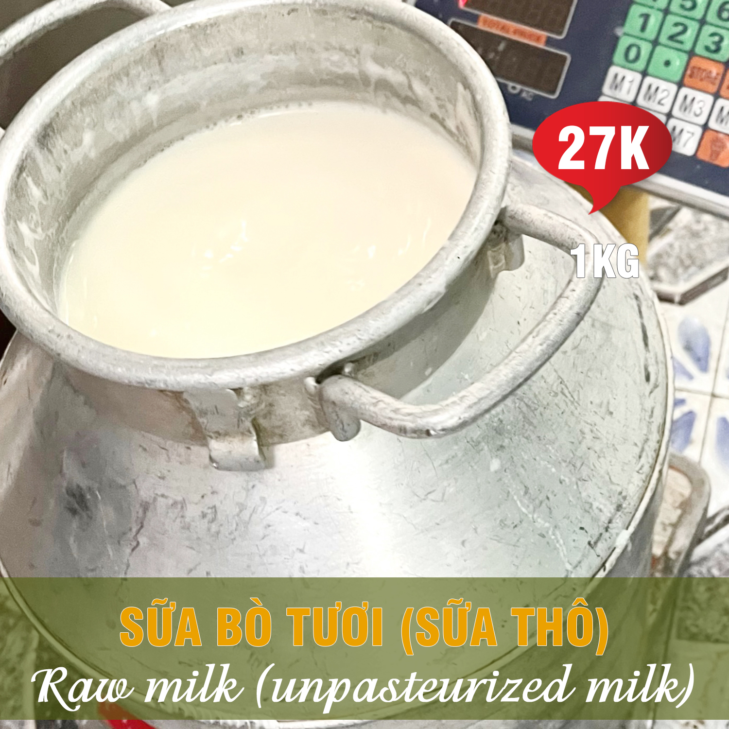 Sữa mới vắt, sữa thô. Khách nhận sữa phải nấu sôi trước khi uống.