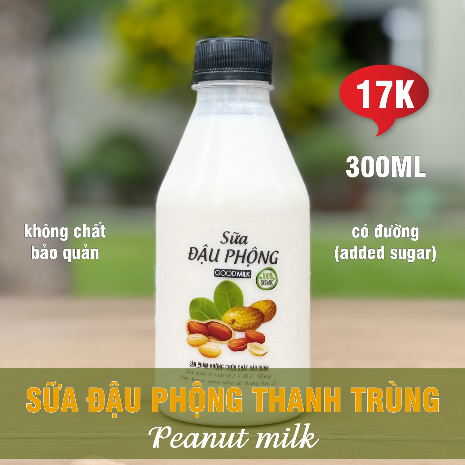 Đừng lo! Sữa Đậu Phộng của Good Milk siêu mịn, dễ uống, giữ trọn vị béo ngậy và dinh dưỡng từ thiên nhiên.